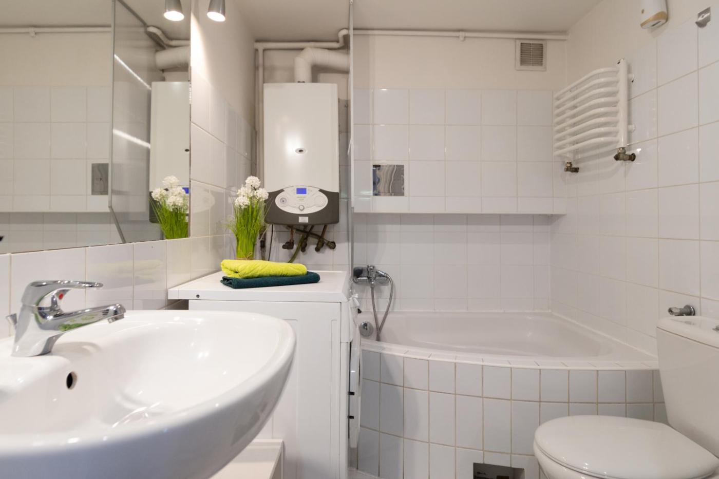 Apartament z 2 sypialniami. The fully equipped kitchen features a stovetop, a refrigerator, a dishwasher and kitchenware. The apartment provides a washing machine, a wardrobe, an electric kettle, a flat-screen TV with satellite channels, as well as ancourtyard view. The unit offers 3 beds. Apartament - 5 osobowy. Powierzchnia pokoju ok.: 60 mkw.
