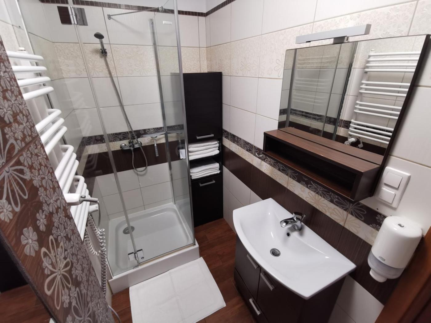 Apartament z 2 sypialniami. Featuring a private entrance, this spacious apartment also consists of 1 living room, 2 separate bedrooms and 1 bathroom with a shower. Guests can make meals in the kitchen that is equipped with a stovetop, a refrigerator, a dishwasher and kitchenware. Boasting a terrace with ancourtyard view, this apartment also provides a tea and coffee maker and a flat-screen TV with satellite channels. The unit offers 3 beds. Apartament - 5 osobowy. Powierzchnia pokoju ok.: 70 mkw.