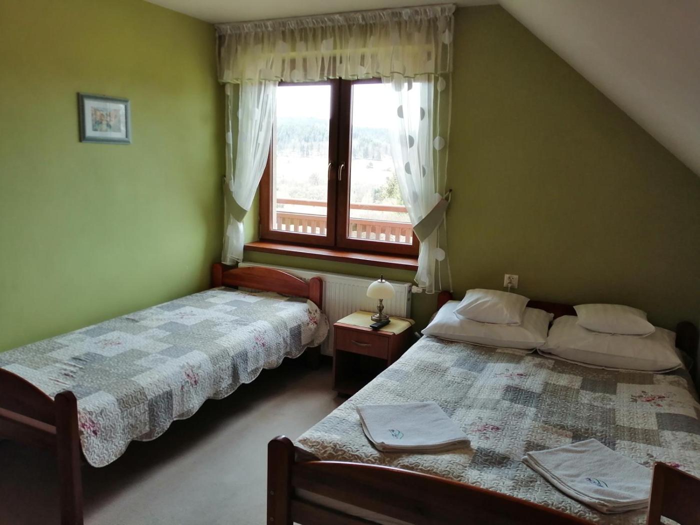 Pokój Czteroosobowy. The quadruple room provides a high chair for children, a carpeted floor, as well as a private bathroom boasting a shower. Guests can make meals in the kitchen that has a stovetop, a refrigerator, kitchenware and a microwave. The quadruple room features a tea and coffee maker, a dining area, a wardrobe, a flat-screen TV, as well as mountain views. The unit has 3 beds. Pokój Czteroosobowy - 4 osobowy. Powierzchnia pokoju ok.: 20 mkw. ;